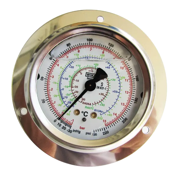گیج فشار ویکا یک ابزار مکانیکی یا دیجیتال است که فشار سیال یا گاز را از طریق حسگر اندازهگیری کرده و آن را بهصورت عددی روی صفحه نمایش یا عقربه نشان میدهد. گیج فشار یکی از ابزارهای کلیدی در سیستمهای تبرید و تهویه مطبوع است که با اندازهگیری دقیق فشار، به عملکرد بهینه، ایمنی و افزایش طول عمر سیستم کمک میکند. این گیجها در عیبیابی، تنظیم و شارژ مبرد نیز نقش حیاتی دارند.