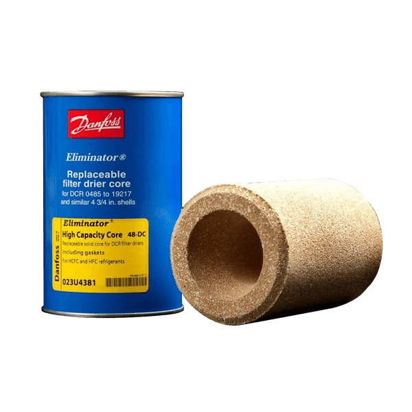 کر درایر دانفوس درون پوسته درایر قرار میگیرد. این قطعه نوعی فیلتر درایر خط مایع است که رطوبت و ذرات ناخالصی مبرد را جذب میکند.هسته خشککن فعال آن از یخزدگی شیر انبساط و آسیب به کمپرسور جلوگیری کرده و در نتیجه، موجب پایداری عملکرد سیستم تبرید میشود.